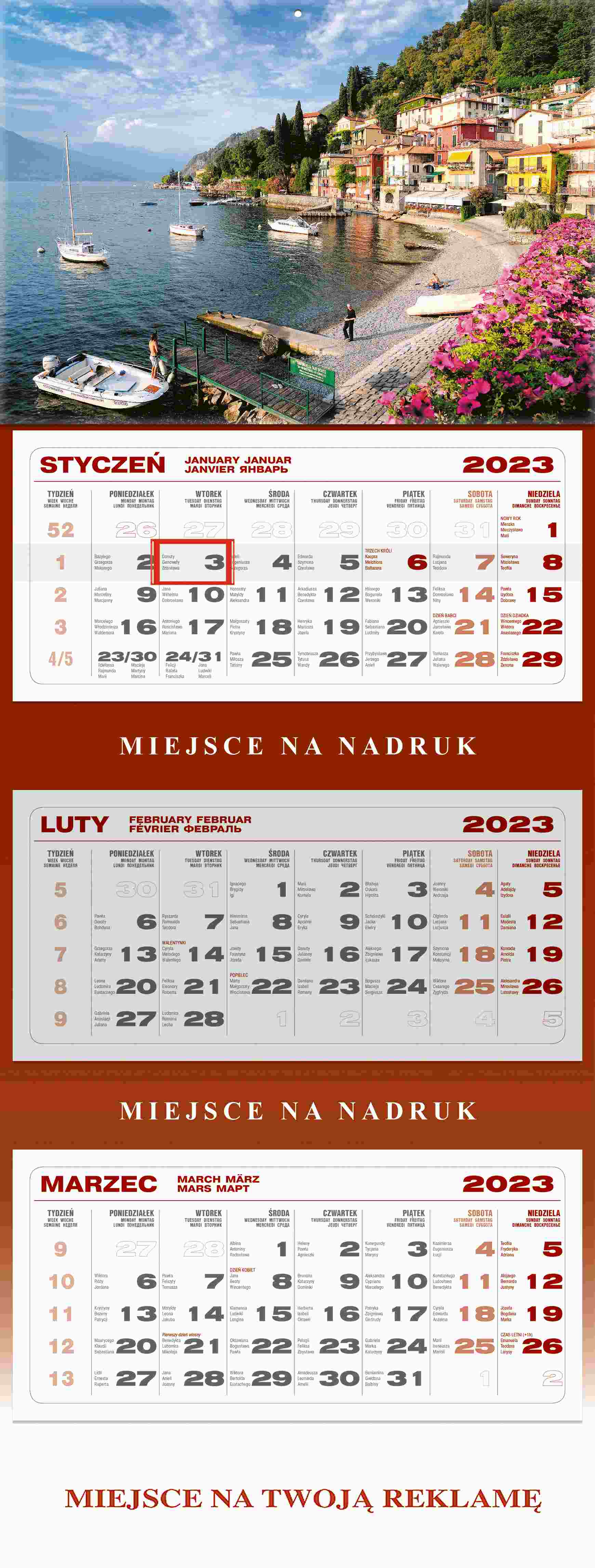 Opakowanie Kalendarz 2023 ścienny trójdzielny Zatoka