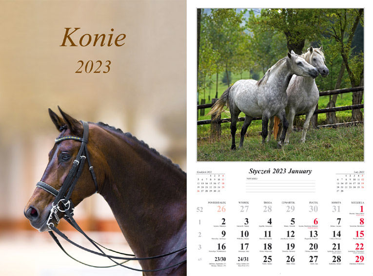 Opakowanie Kalendarz 2023 Ścienny wieloplanszowy Konie