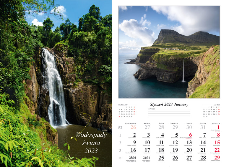 Kalendarz 2023 Ścienny wieloplanszowy Wodospady