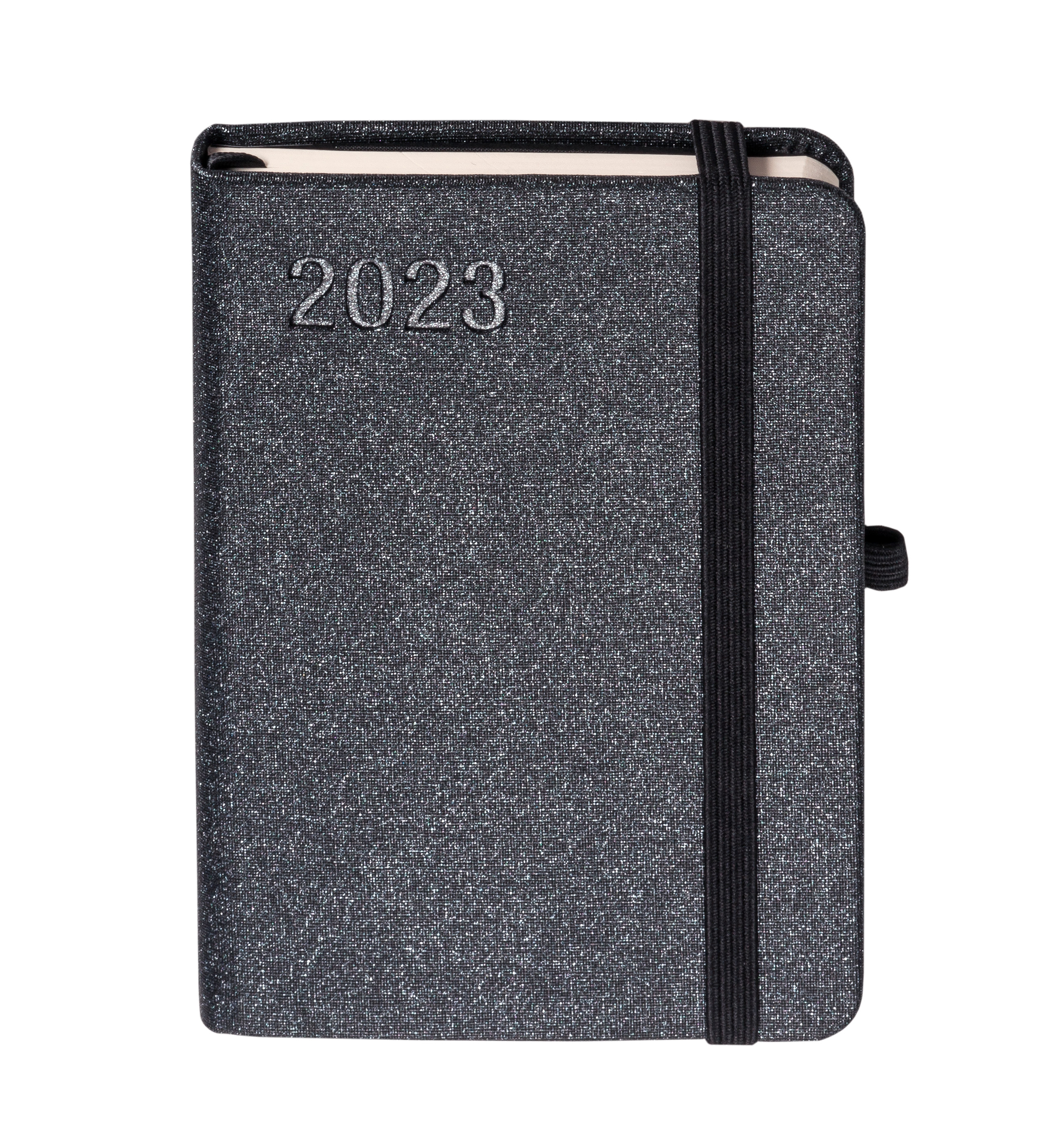• Kolekcja: Sakura • Format: A6 • Wymiary okładki: 140x90 mm • Układ: tydzień do wglądu • Ilość stron: 144 • Oprawa: twarda • Materiał: skóra ekologiczna, z błyszczącymi drobinkami • Gramatura papieru: 80g • Kolor papieru: off white • Dodatki: plan roku 2023, ważne wydarzenia, plan miesiąca, skorowidz adresowy, notatki • Pionowa gumka zamykająca: w kolorze okładki • Wstążka: w kolorze okładki • Gumka na długopis: w kolorze okładki • Zaokrąglone rogi: tak • Wyklejka: czarna • Koperta: tak • Dostępne kolory: czarny, granatowy, szampański