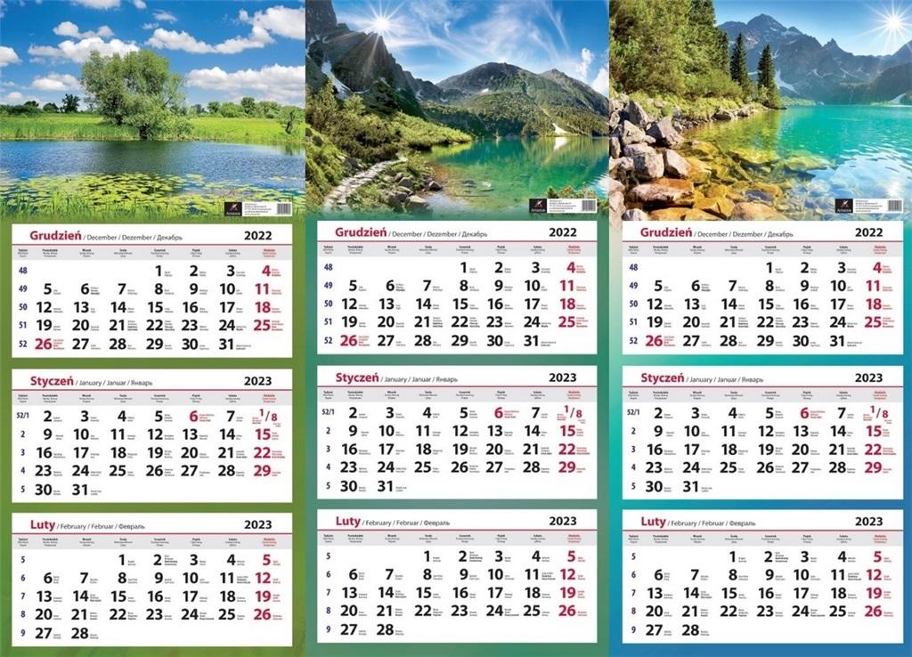 Uwaga: Kalendarz trójdzielny dostępny w 32 wzorach, wysyłka wzoru losowa.