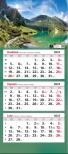 Kalendarz trójdzielny, 3 oddzielne miesięczne kalendaria, ruchomy pasek z okienkiem do zaznaczenia bieżącego dnia, rozmiar 71x31 cm, eurodziurka do zawieszenia.