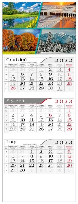 Kalendarz 2023 Trójdzielny 4 pory roku