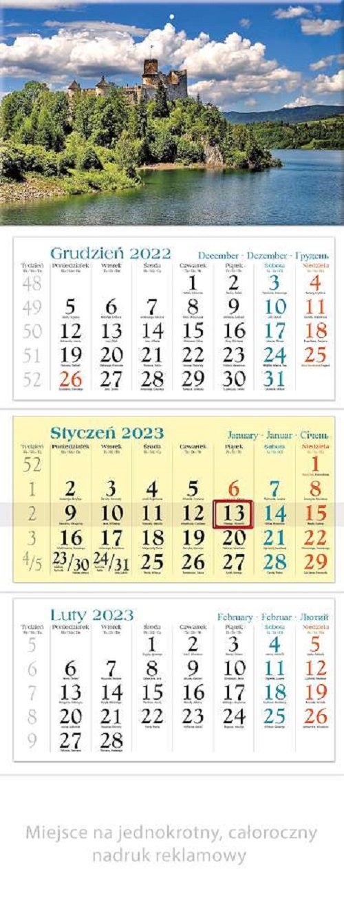 papier: główka karton 230 g/m2; plecy karton 300 g/m2; kalendarium papier offset 90 g/m2;
