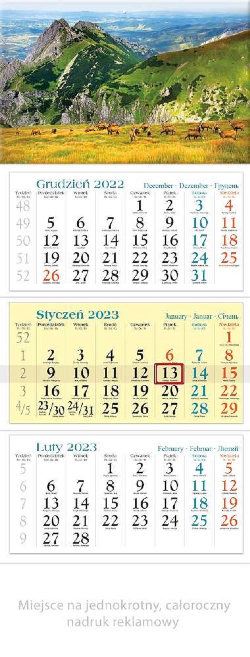 Kalendarz 2023 Trójdzielny Giewont