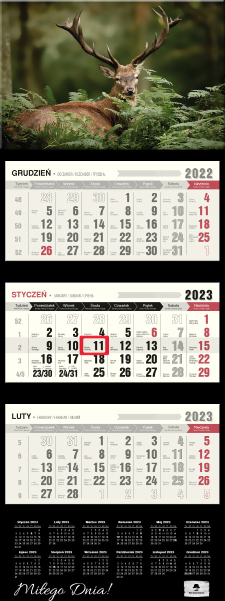 Opakowanie Kalendarz 2023 trójdzielny jeleń KT-2 V32