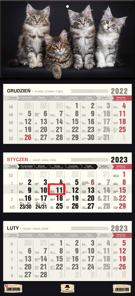 Opakowanie Kalendarz 2023 trójdzielny kotki KT-1 V30