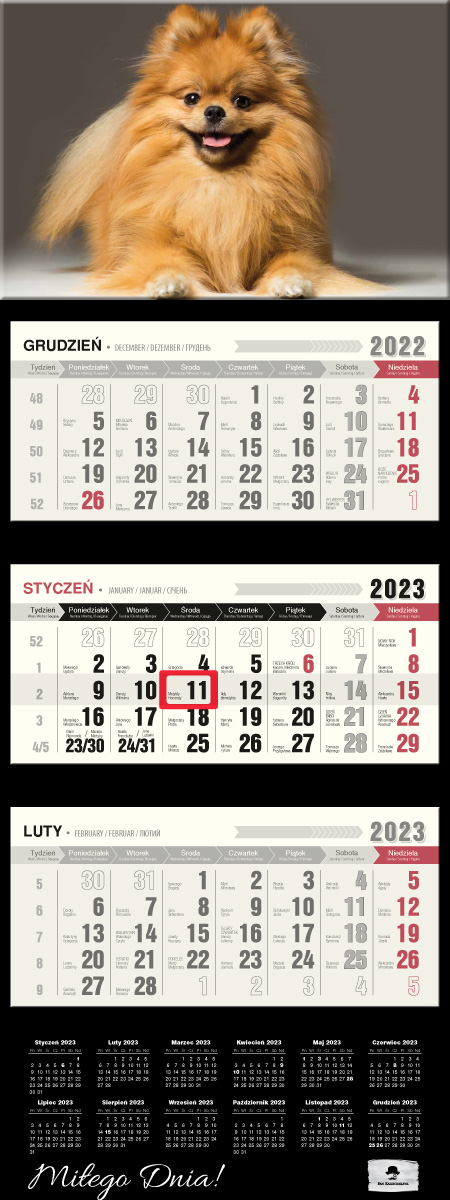 Kalendarz 2023 trójdzielny pies KT-2 V36