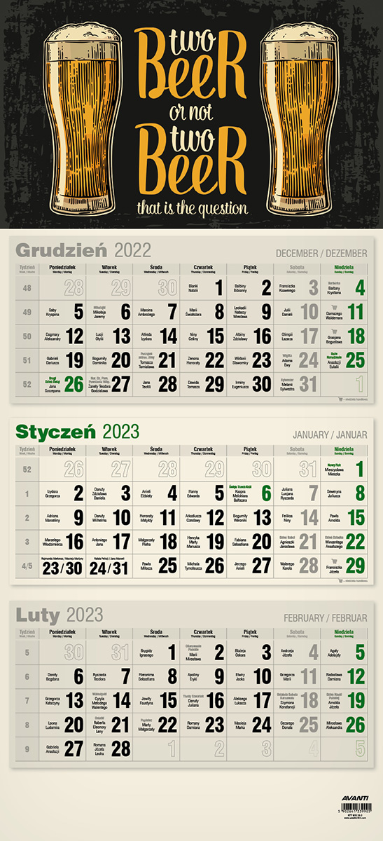 Kalendarz 2023 trójdzielny Piwo EKO KTT2