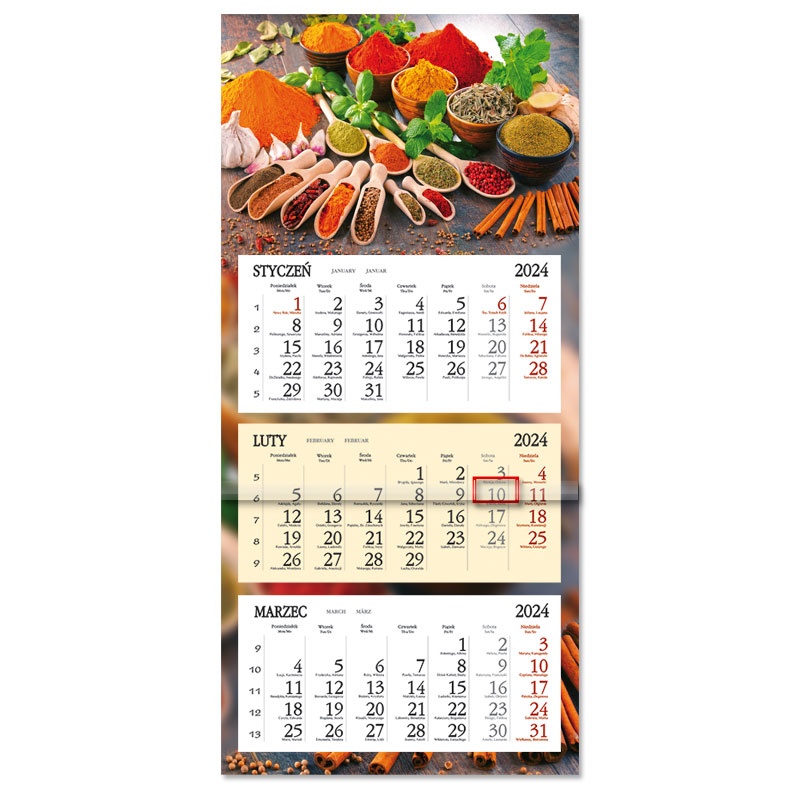 Kalendarz 2023 Trójdzielny płaska główka SB8-12 Przyprawy