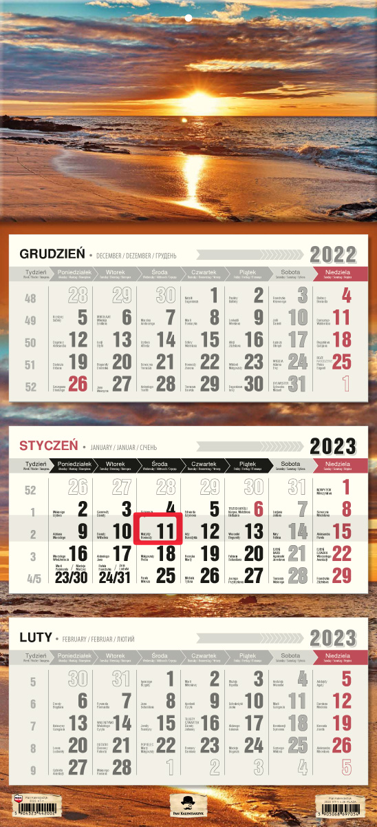 Opakowanie Kalendarz 2023 trójdzielny plaża KT-1 V26