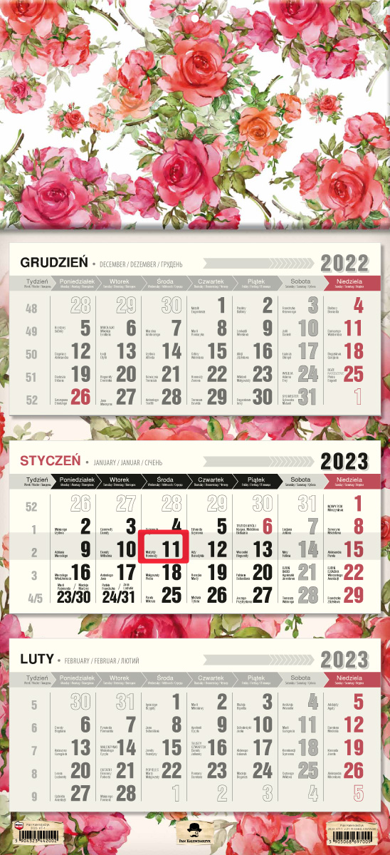 Opakowanie Kalendarz 2023 trójdzielny rose vintage KT-1 V21