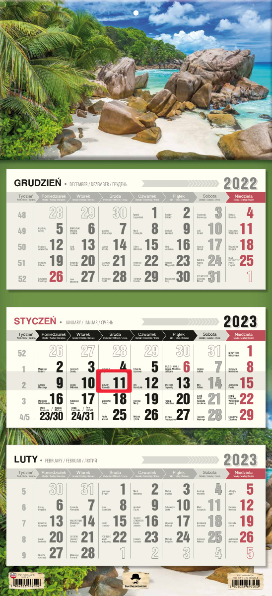 Kalendarz 2023 trójdzielny Seszele KT-1 V24