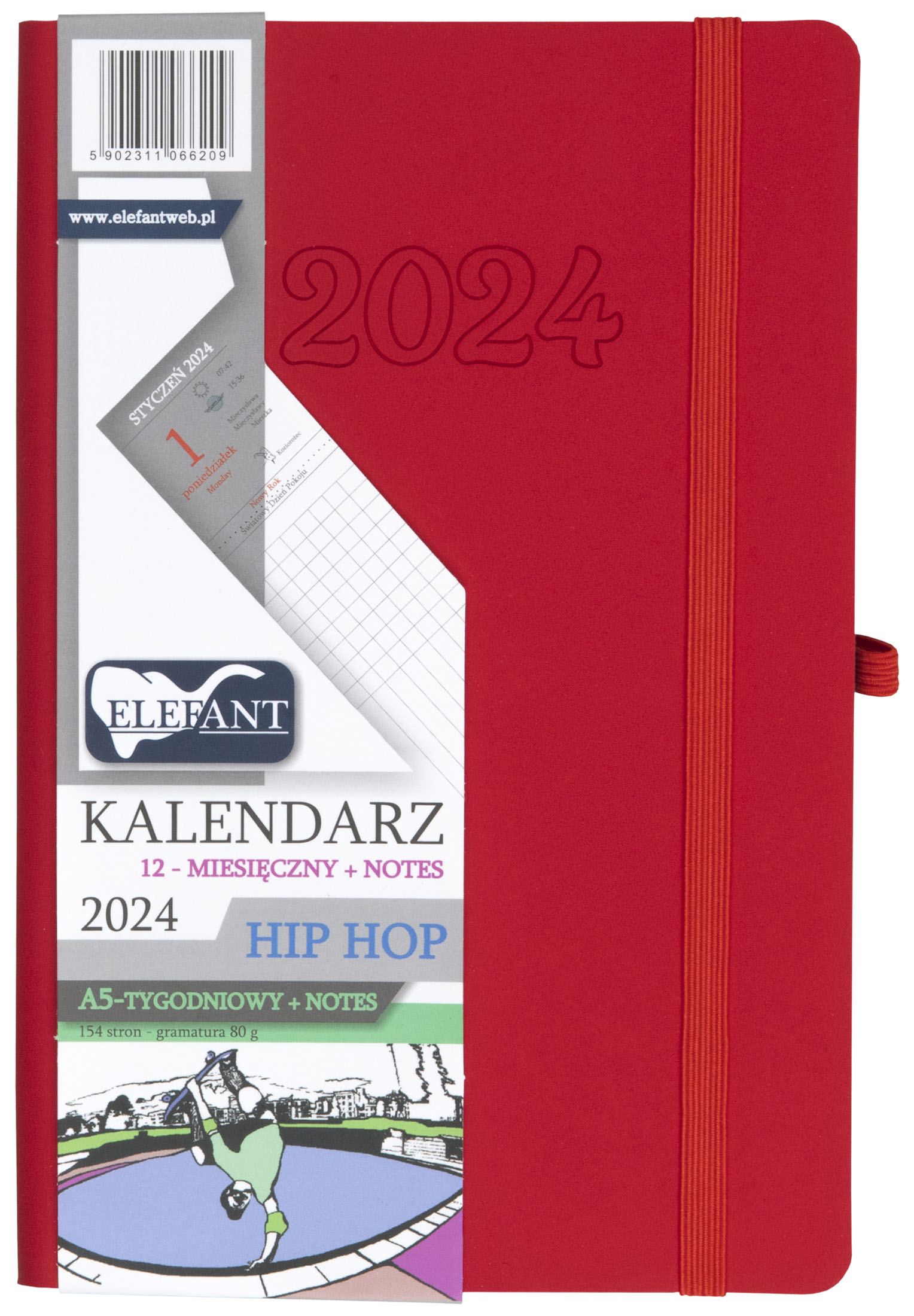 Opakowanie Kalendarz 2024 A5 12M + notes Hip hop czerwony