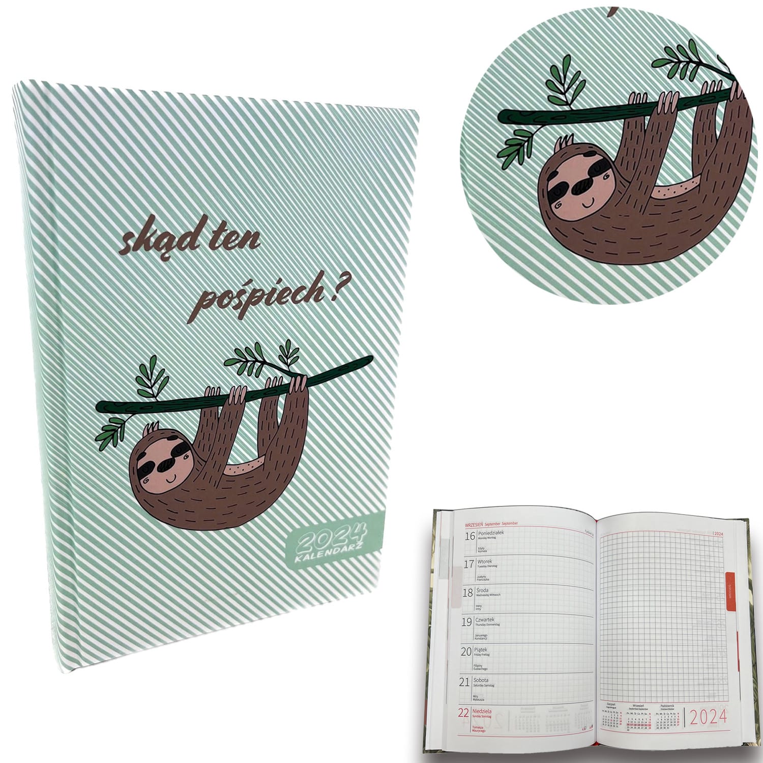 Opakowanie Kalendarz 2024 A5 tygodniowy Leniwiec chwilunia