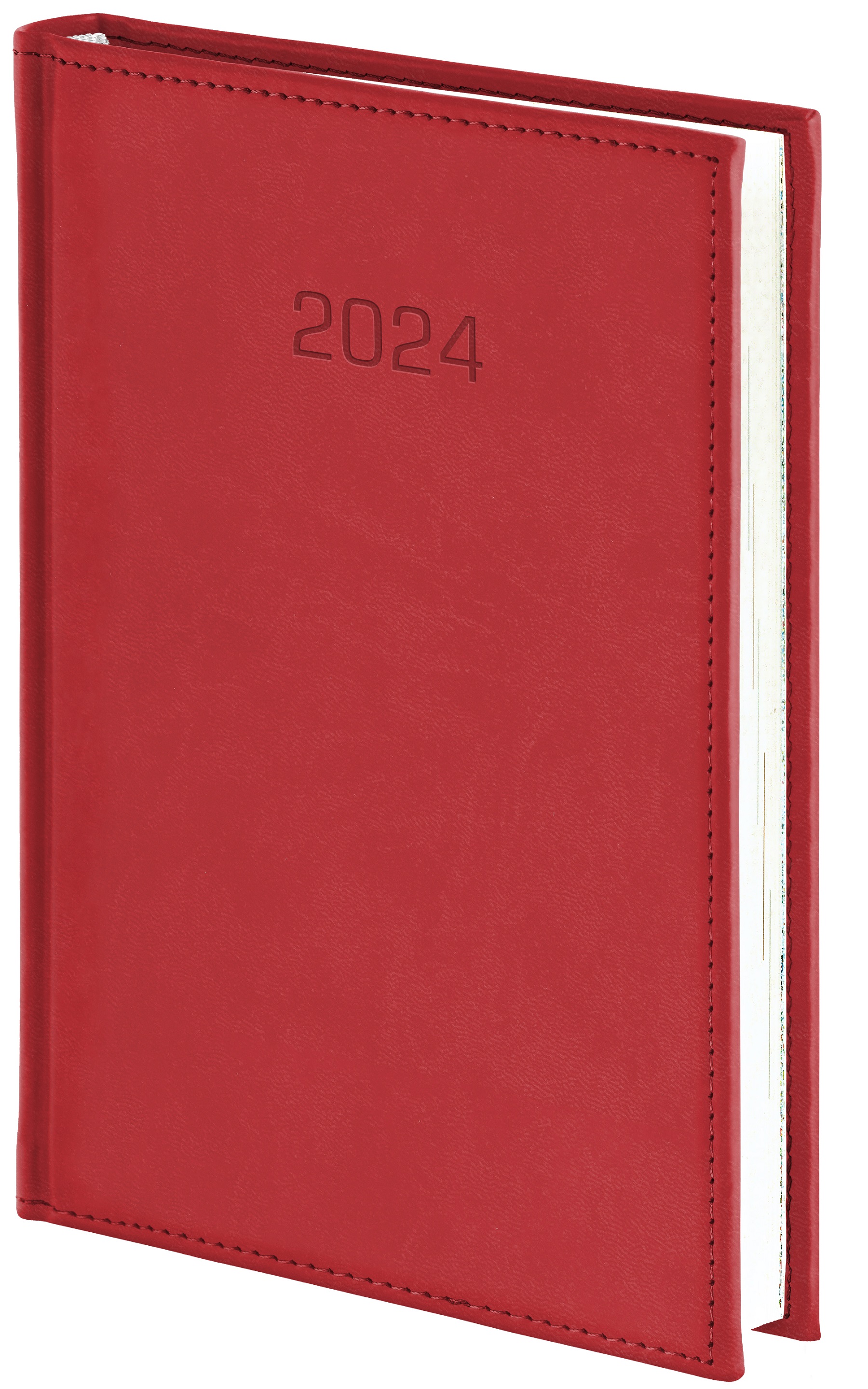 Miękka, przyjemna w dotyku oprawa wykonana z materiału pokryciowego Vivella. Brzeg okładki obramowany ozdobnym przeszyciem. Rozmieszczenie daty wytłoczonej w górnej części okładki umożliwia wykonanie tłoczenia termicznego nawet na dużej powierzchni. Drukowany na papierze białym; bloki terminarza szyte nićmi; kapitałka i tasiemka białe; posiada perforację narożników, przejrzysty układ graficzny kalendarium; rozbudowana część informacyjna; oprawa umożliwia wykonanie nadruków, tłoczenia i personalizacji kalendarza.