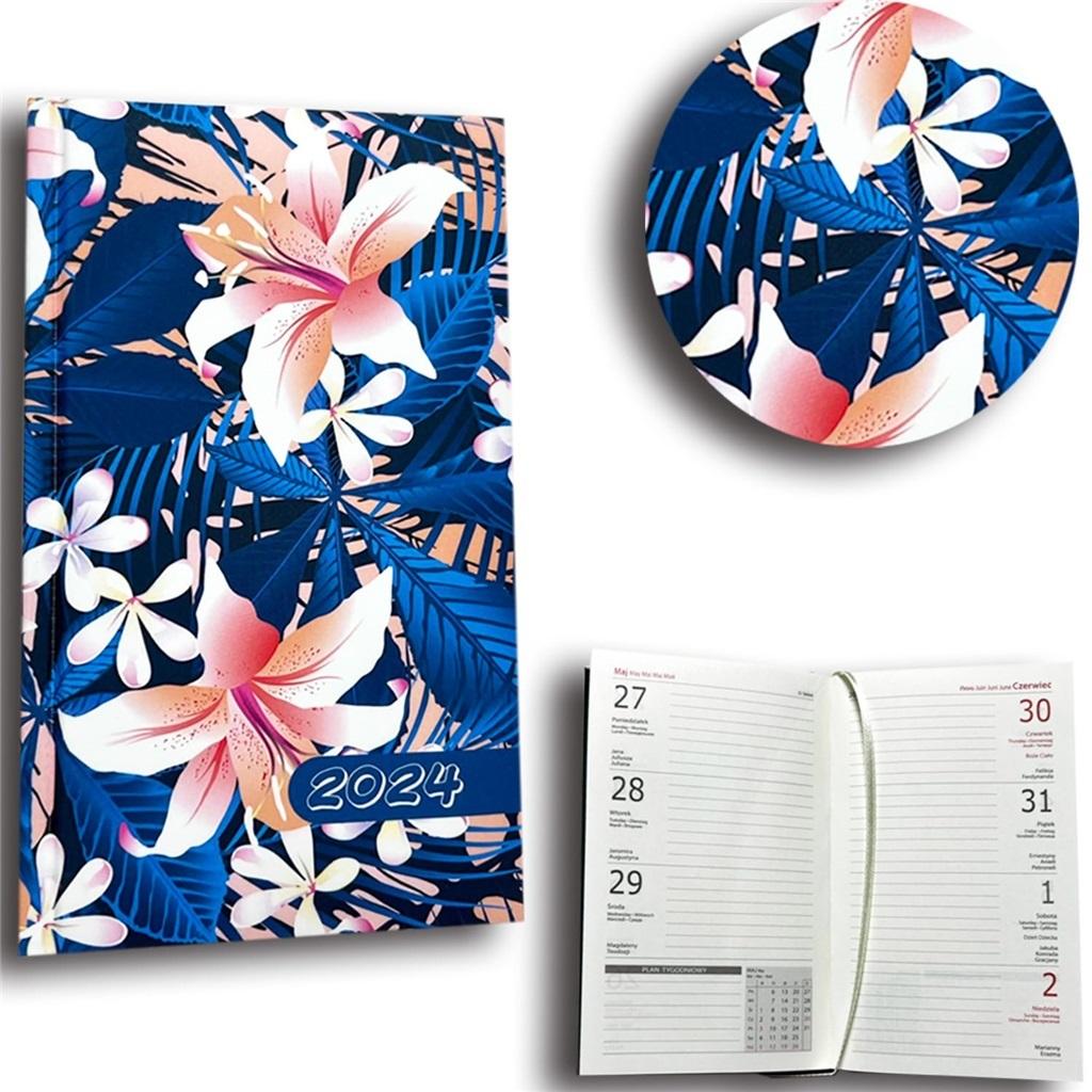 Kalendarz 2024 A6 tygodniowy hibiskus niebieski