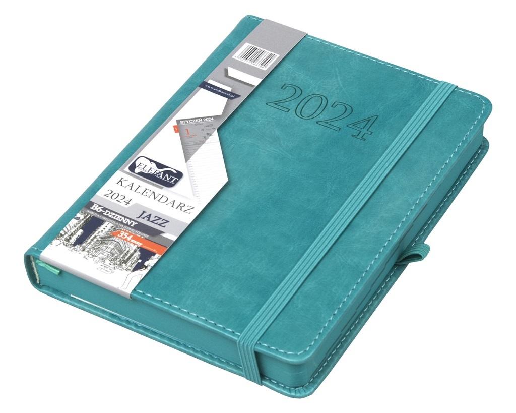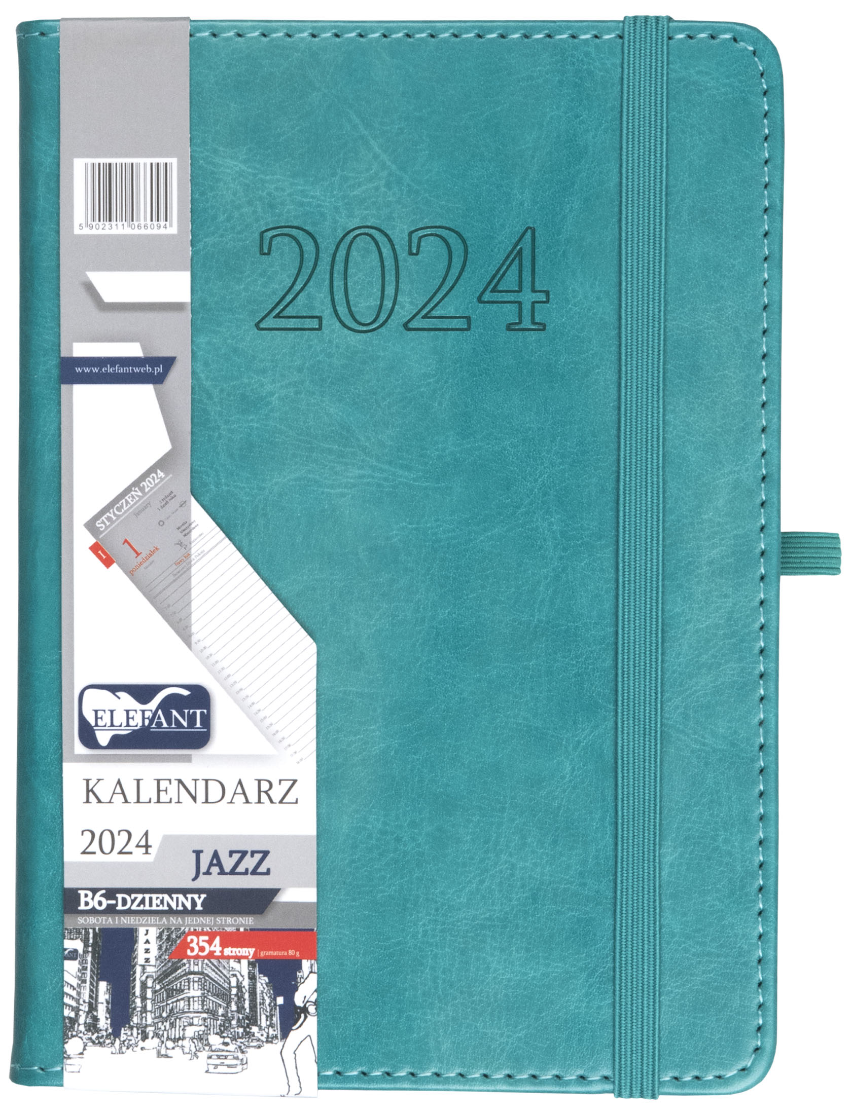 wewnątrz: plan roku i rozkład roku 2024, terminy ferii zimowych, święta oficjalne i zwyczajowe, podróże, informacje dla podróżnych, protokół powypadkowy w przypadku stłuczki, notes, skorowidz teleadresowy, kalendarium dodatkowe na 2023-2024-2025 rok