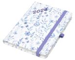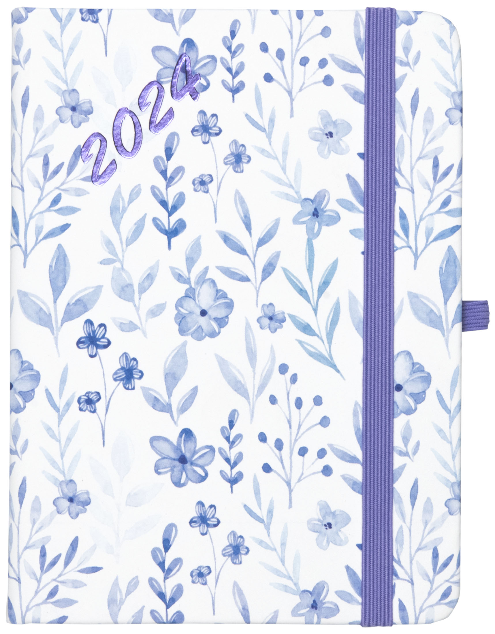 • wewnątrz: plan roku i rozkład roku 2024, terminy ferii zimowych, święta oficjalne i zwyczajowe, protokół powypadkowy w przypadku stłuczki, notes, skorowidz teleadresowy, kalendarium dodatkowe na 2023-2024-2025 rok