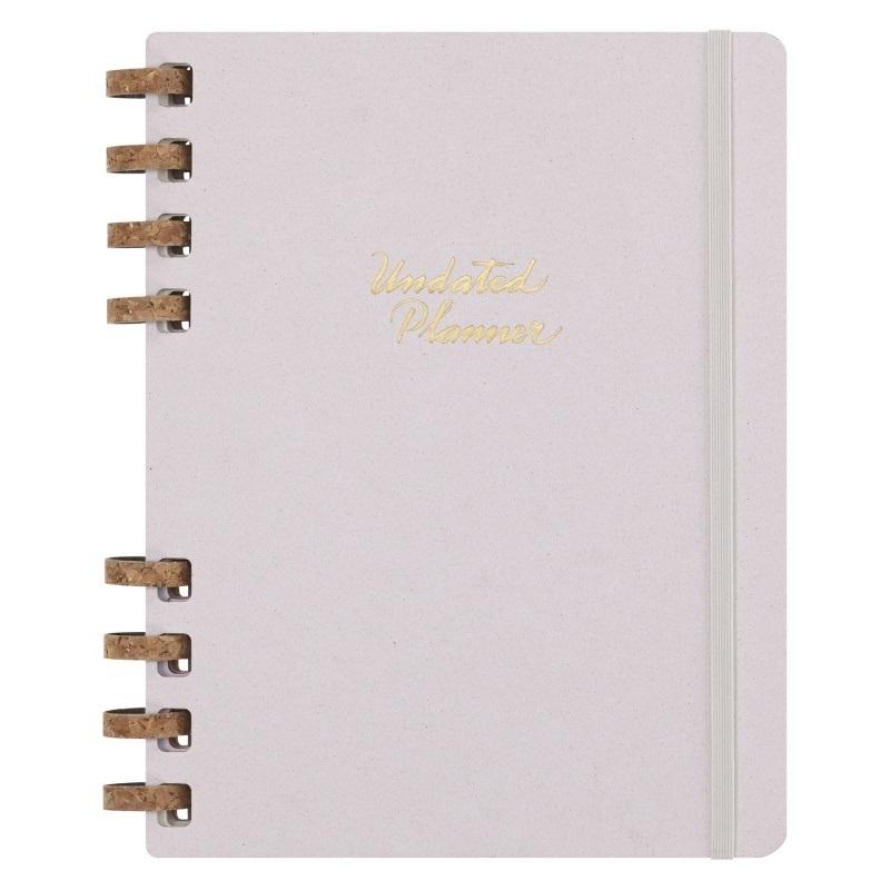 Undated Life Planner to wszechstronny towarzysz na co dzień dla każdego, kto chce zrównoważyć organizację z dobrym samopoczuciem i kreatywną ekspresją. Od wyczuwalnej w dotyku spirali z mieszanki korkowej po okładki Favini, każda część tego wszechstronnego planisty została stworzona, by zachwycać i inspirować z ustrukturyzowanymi stronami bez daty, które zapewniają miejsce zarówno na plany osobiste, jak i zawodowe.