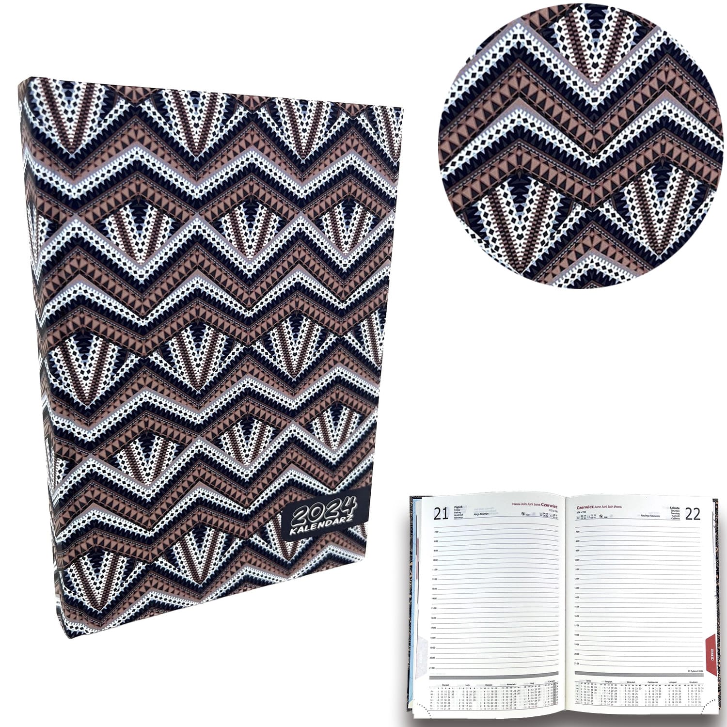 Kalendarz 2024 dzienny A5 soft touch zygzaki EV230036