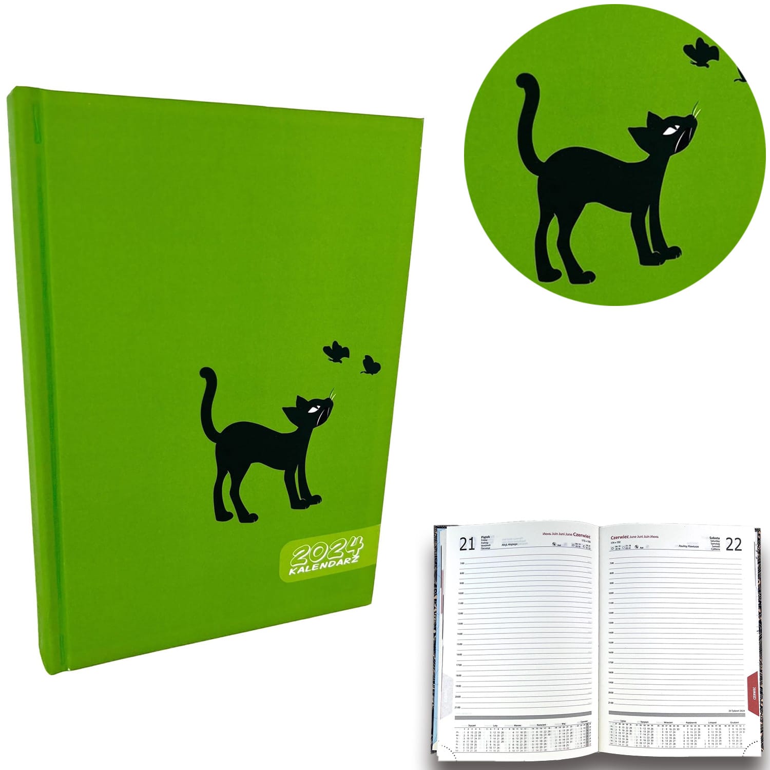 Opakowanie Kalendarz 2024 dzienny sb/nd osobno A5 soft touch kot w zieleni Ev230038