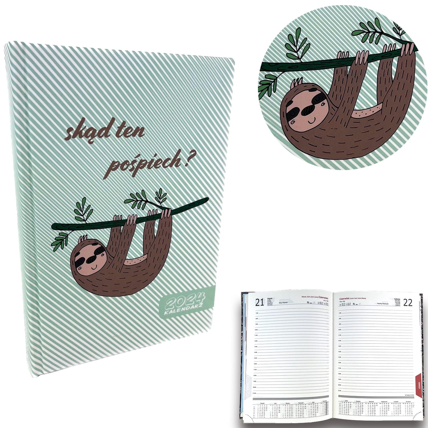 Opakowanie Kalendarz 2024 dzienny sb/nd osobno A5 soft touch leniwiec chwilunia Ev230028