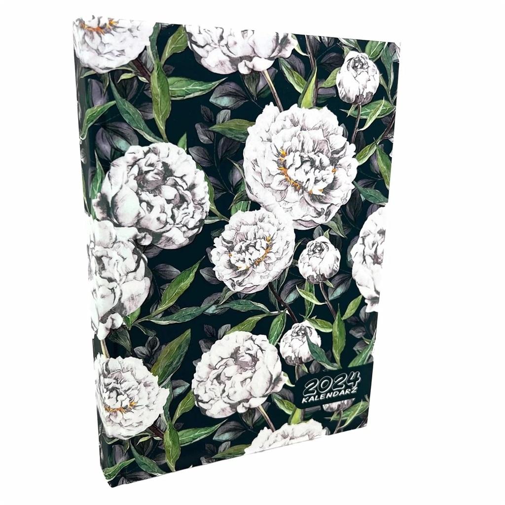 Kalendarz 2024 dzienny sb/nd osobno A5 soft touch peonie w zieleni EV230039