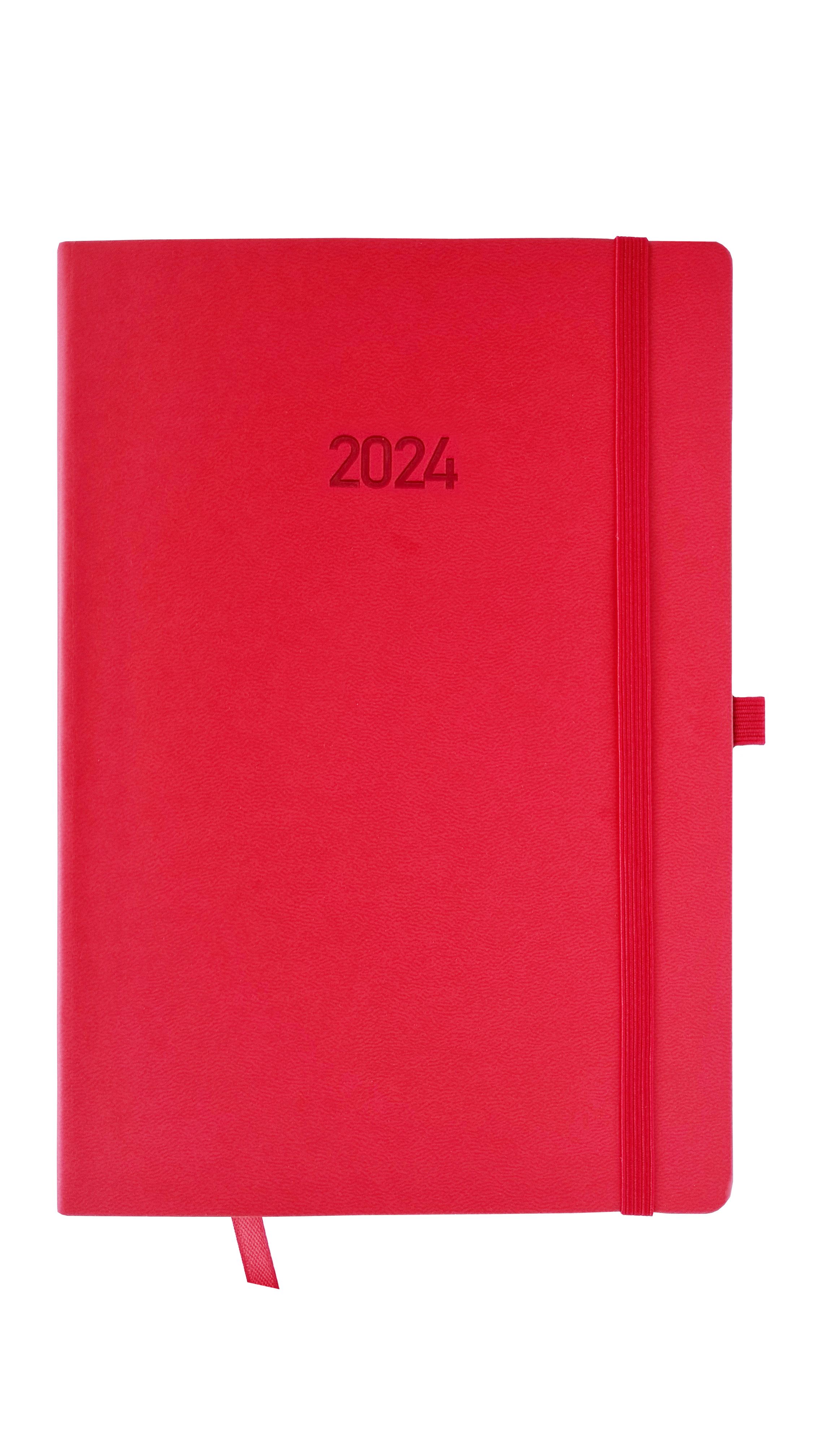Kalendarz 2024 flex A5 dzienny V4 czerwony