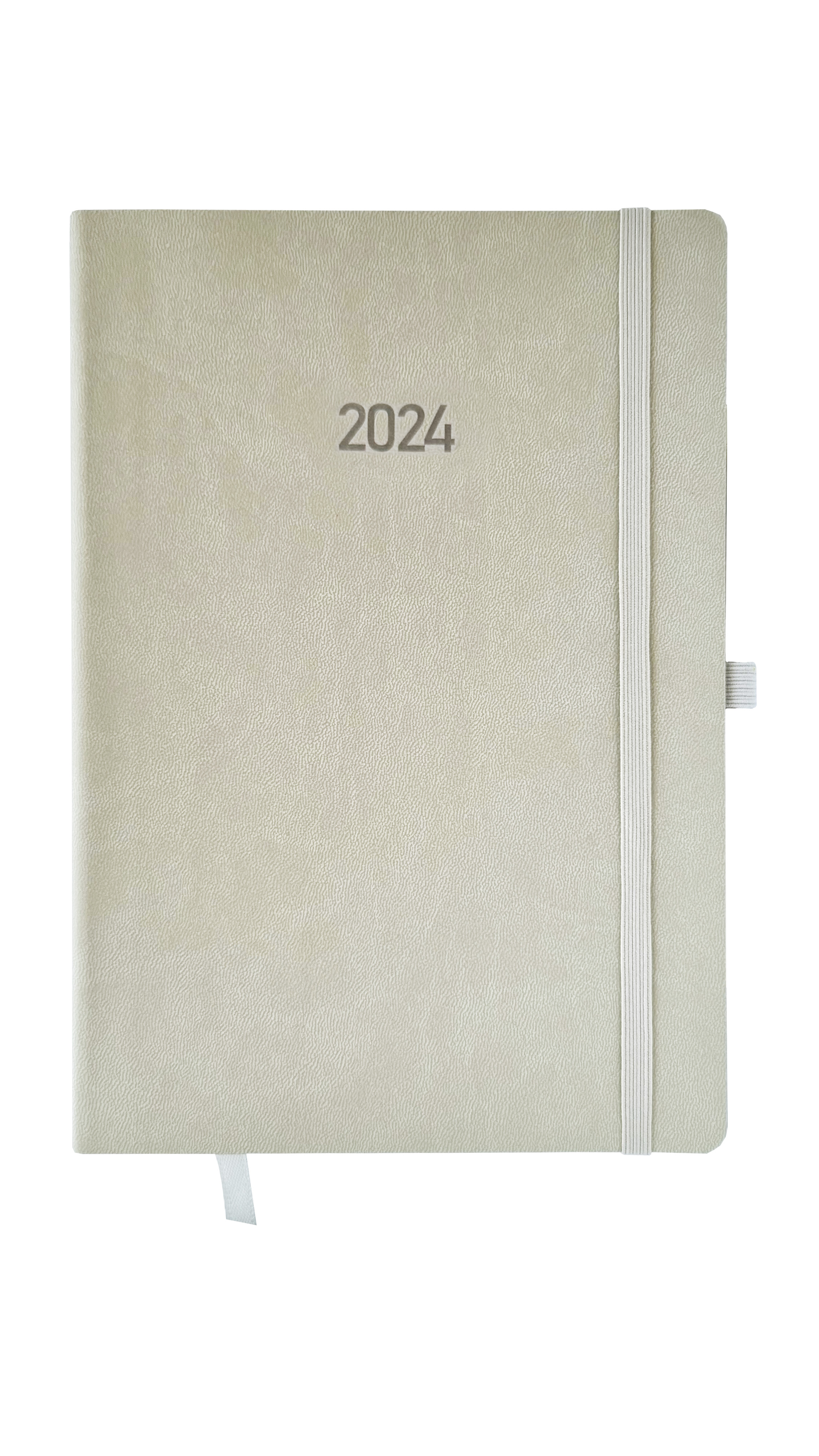 papier Chamois (kremowy),tłoczenie roku na gorąco,zakładka w kolorze oprawy,zaokrąglone rogi,