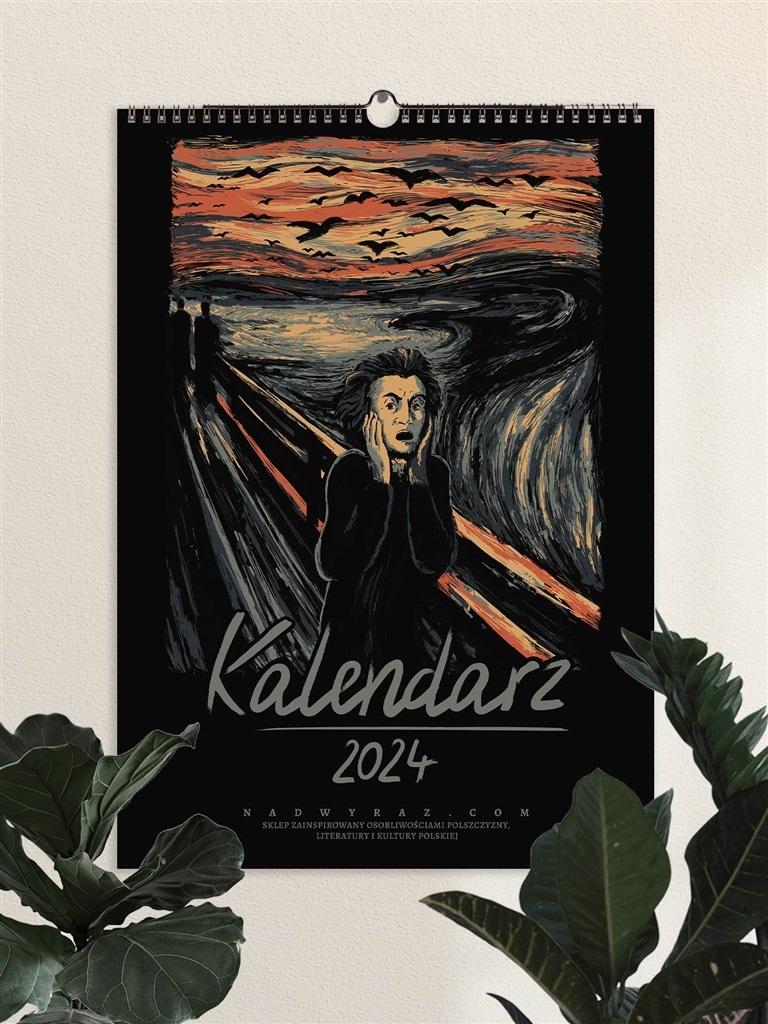 jeszcze będzie pięknie, jeszcze będzie normalnie! - ta idea przyświecała nam podczas tworzenia KALENDARZA LITERACKIEGO na 2024 rok. Oryginalny KALENDARZ ścienny od NADWYRAZ to produkt inspirowany literaturą i kulturą polską. Zawiera dwanaście wyjątkowych grafik naszego autorstwa w formacie A3 i dodatkowe informacje na temat świąt związanych z literaturą i sztuką. Umieściliśmy w nim także urodziny polskich pisarzy i poetów - zarówno tych znanych, jak i zapomnianych, dzięki czemu ma walory edukacyjne. KALENDARZ LITERACKI został wydrukowany na przyjemnym w dotyku papierze kredowym. To bardzo gustowny i praktyczny pomysł na prezent dla polonisty oraz każdego miłośnika literatury i kultury polskiej. Wymiary kalendarza: A3 w pionie - 297 x 420 mm. Okładka - Dziady / Krzyk Styczeń - Mickiewicz / x-wieszcze Luty - Papkin Marzec - The Wieszczers Kwiecień - Znachor Maj - Bazyliszek vs Smok wawelski Czerwiec - Kochanowski / Trening czyni mistrza Lipiec - Pozytywnie Sierpień - Gombrowicz / Zrzućcie maski Wrzesień - Ciężkie Norwidy Październik - Dziady / Krzyk Listopad - Arthur Schopenhauer Grudzień - Słowacki sam w domu Kalendarz na 2024 rok inspirowany literaturą Format: A3 w pionie (297 x 420 mm) Liczba kartek: 13 Każdy miesiąc z inną grafiką Zadruk jednostronny Papier kredowy (mat 170 g) Kolor spirali: czarny Idealny prezent dla mola książkowego, polonisty i miłośnika literatury polskiej Wyprodukowano w Polsce