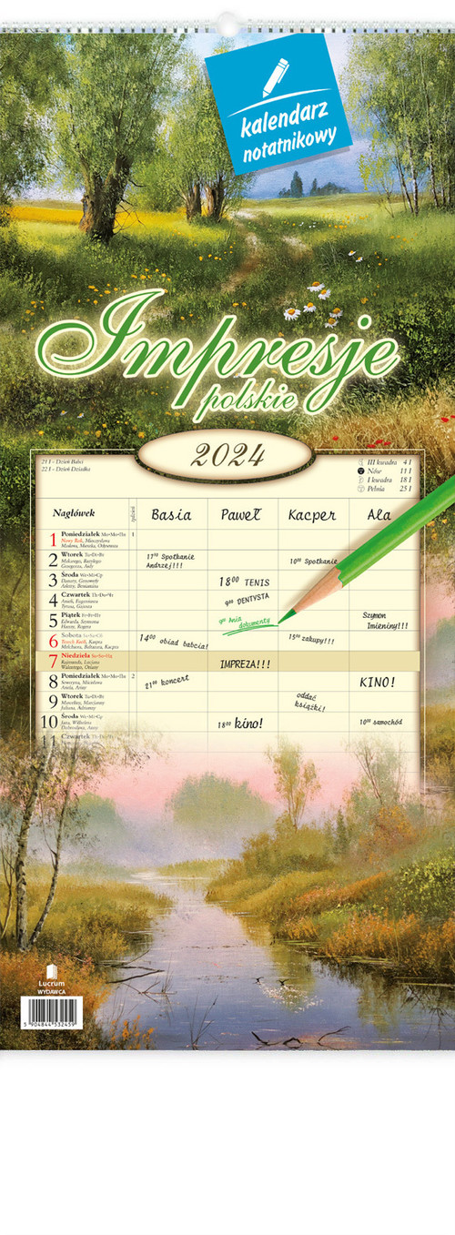 kalendarz ścienny, 13-planszowy, z możliwością zrywania lub