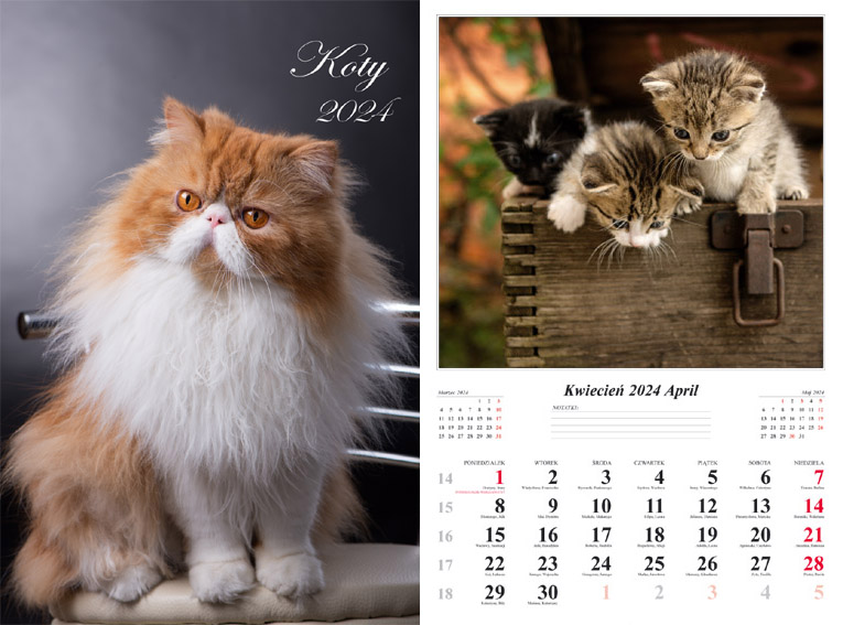 Okładka książki Kalendarz 2024 Ścienny dwustronny Koty