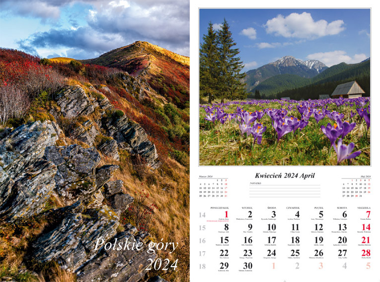Kalendarz 2024 Ścienny dwustronny Polskie góry