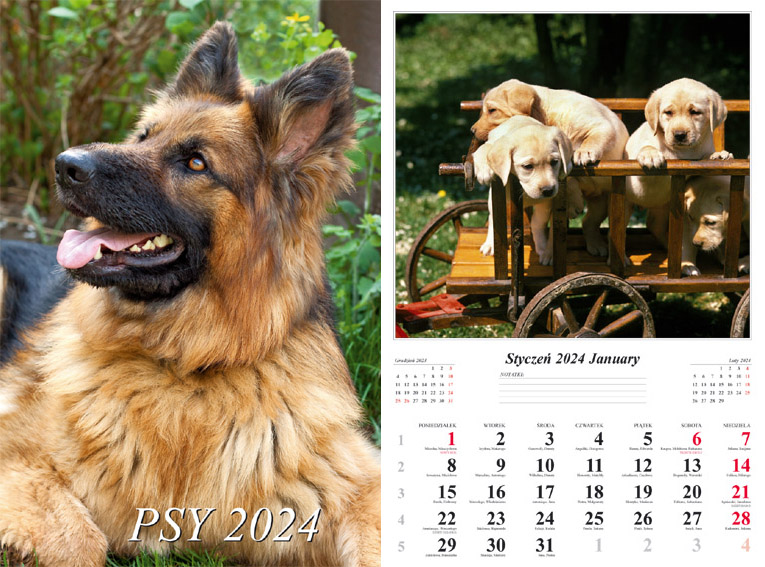 Okładka książki Kalendarz 2024 Ścienny dwustronny Psy
