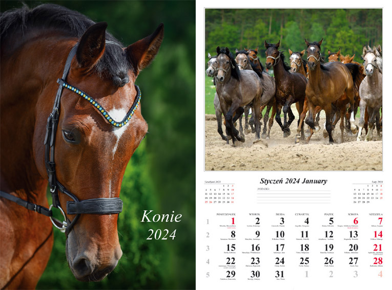 Kalendarz 2024 Ścienny wieloplanszowy Konie