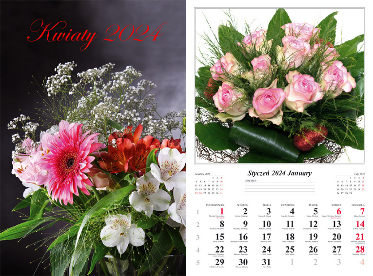 Opakowanie Kalendarz 2024 Ścienny wieloplanszowy Kwiaty