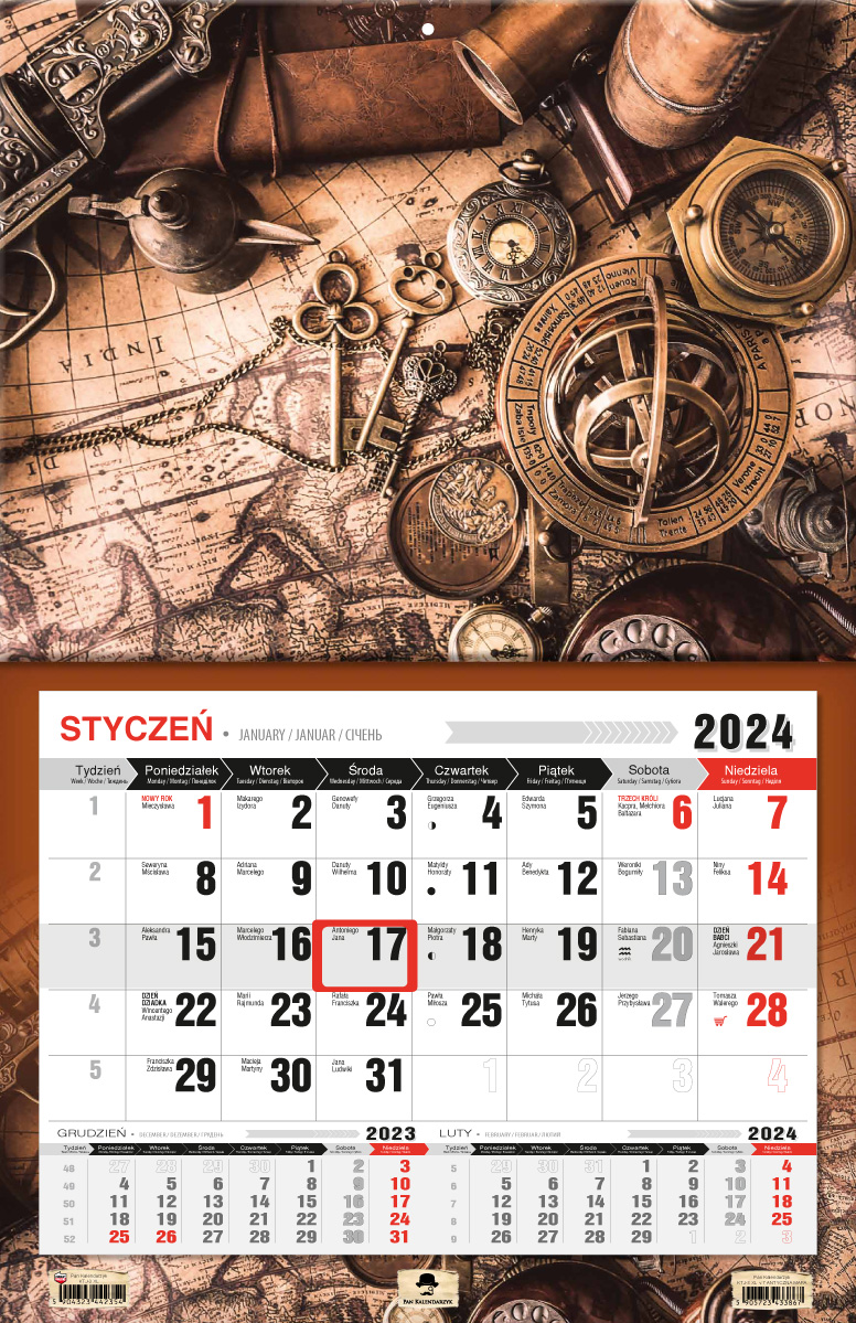 Kalendarz 2024 trójdzielny 3XL jednodzielny antyczna mapa KTJ3XL-V.7