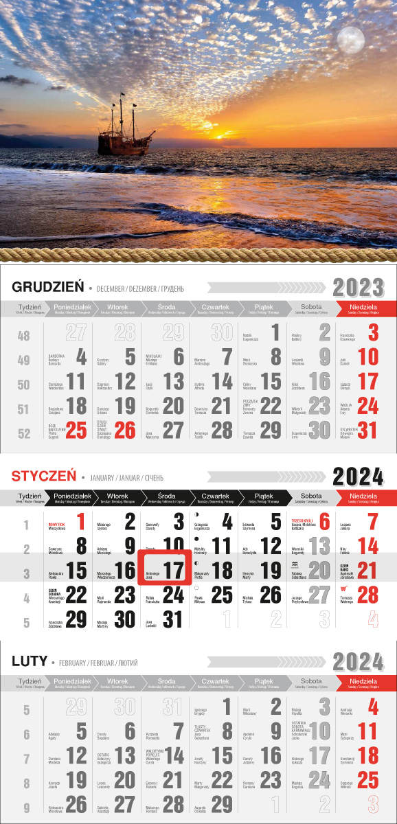 Opakowanie Kalendarz 2024 trójdzielny ekonomiczny morze KTE VE-4