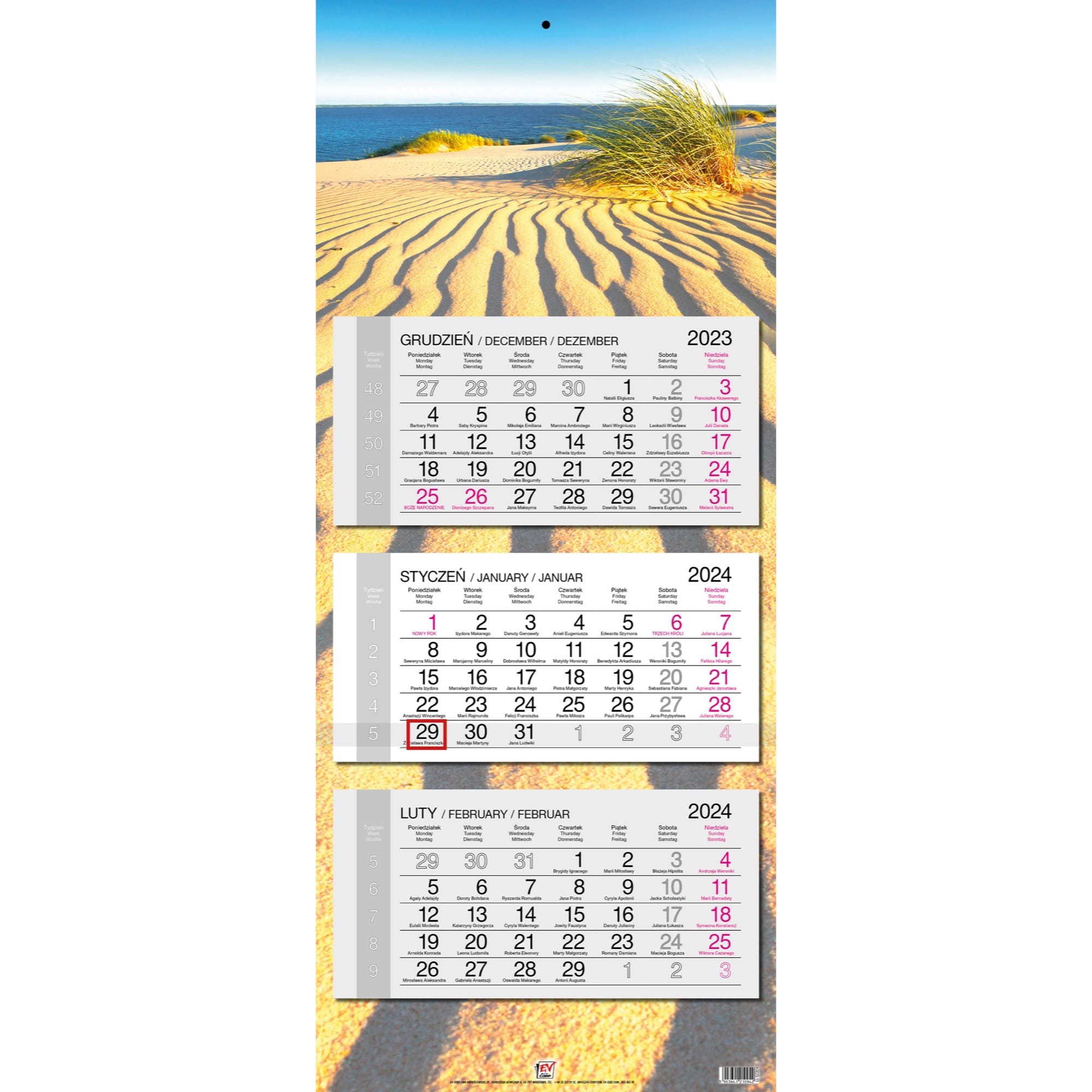 Opakowanie Kalendarz 2024 trójdzielny gł. płaska Bałtyk