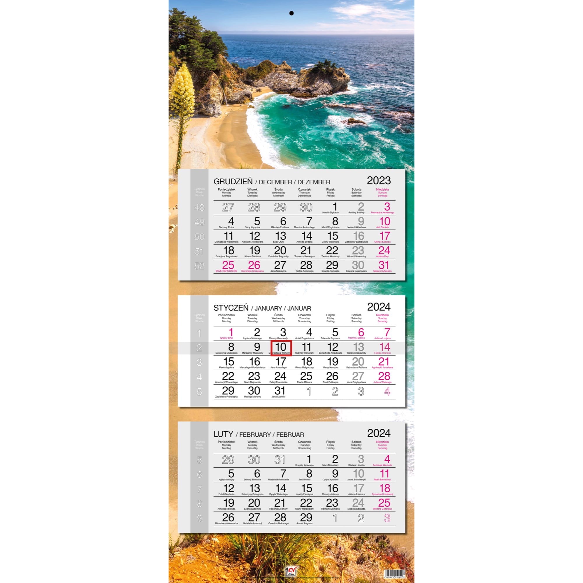 Kalendarz 2024 trójdzielny gł. płaska Kalifornia