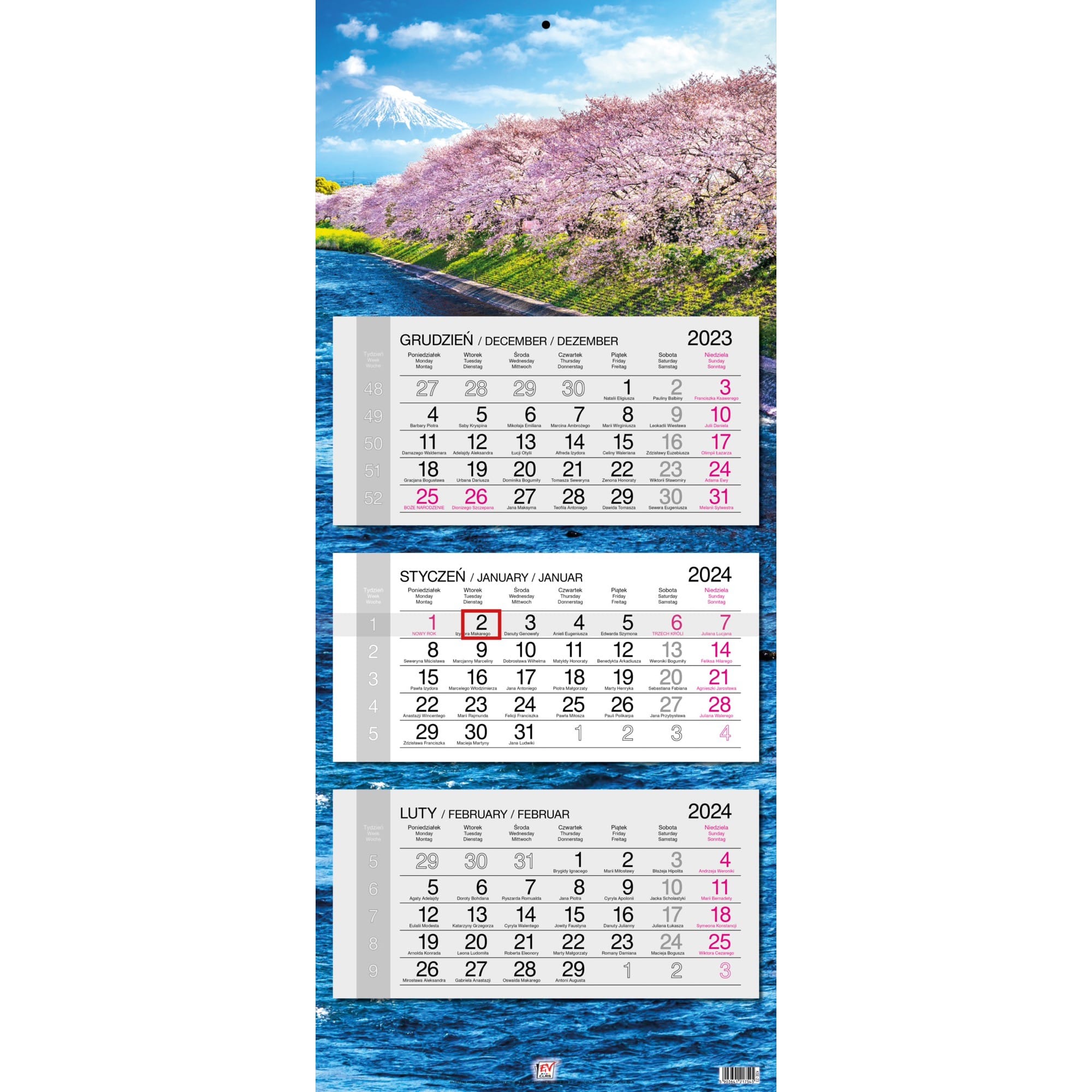 Opakowanie Kalendarz 2024 trójdzielny główka płaska Fudżi