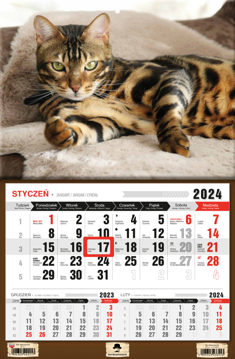 Kalendarz 2024 trójdzielny jednodzielny kot KTJ1-V.17