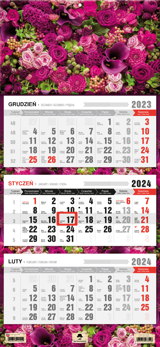 Opakowanie Kalendarz 2024 trójdzielny kwiaty KT1-V.60