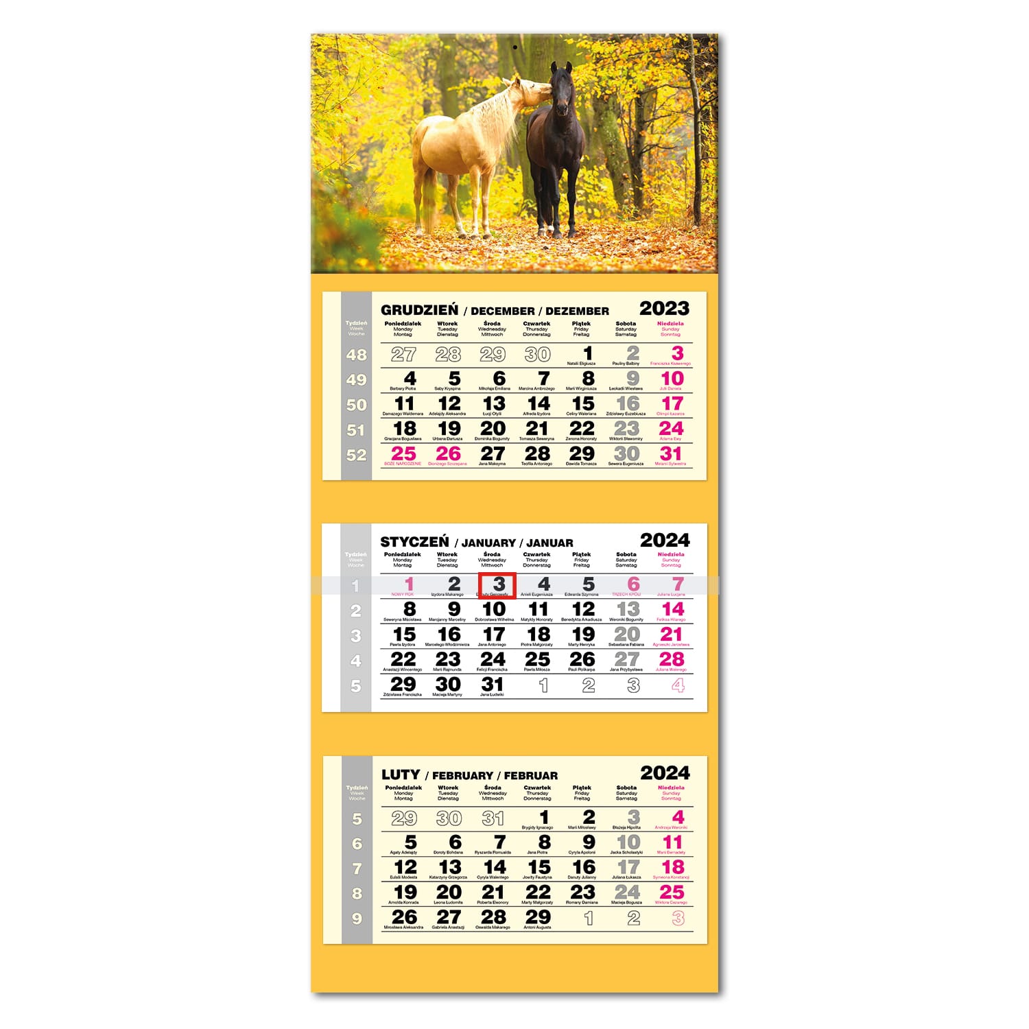 Kalendarz 2024 trójdzielny Lux gł. wypukła Konie