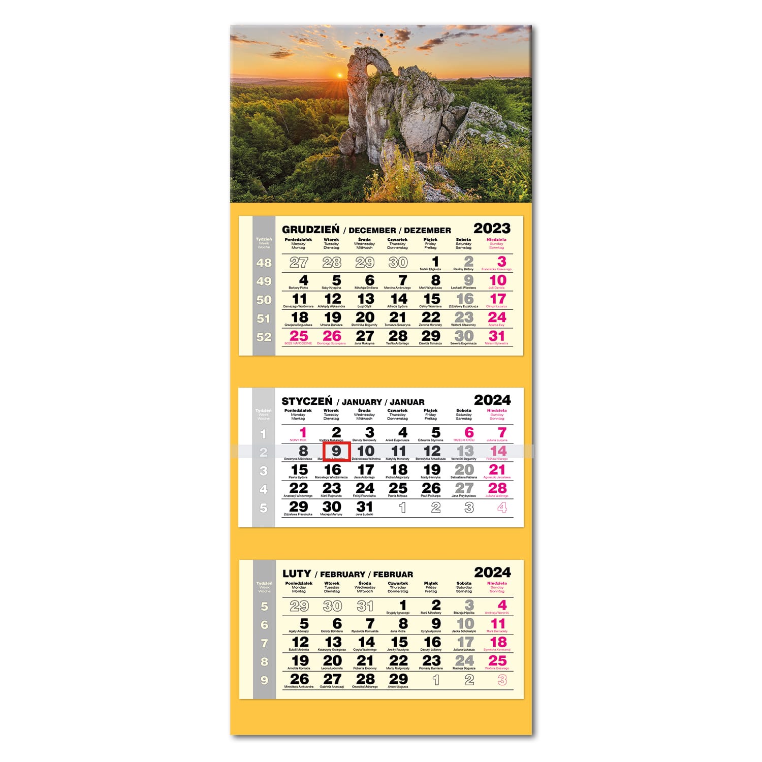 • Kalendarz ścienny, trójdzielny z główką wypukłą.