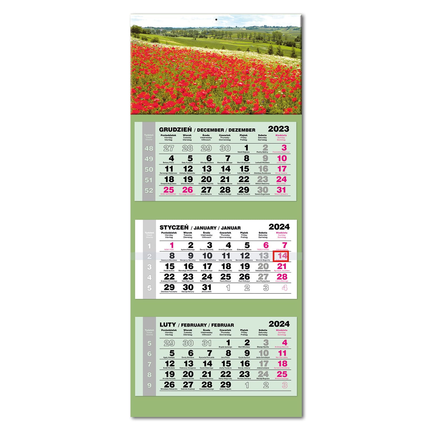 Kalendarz 2024 trójdzielny Lux wypukły Maki