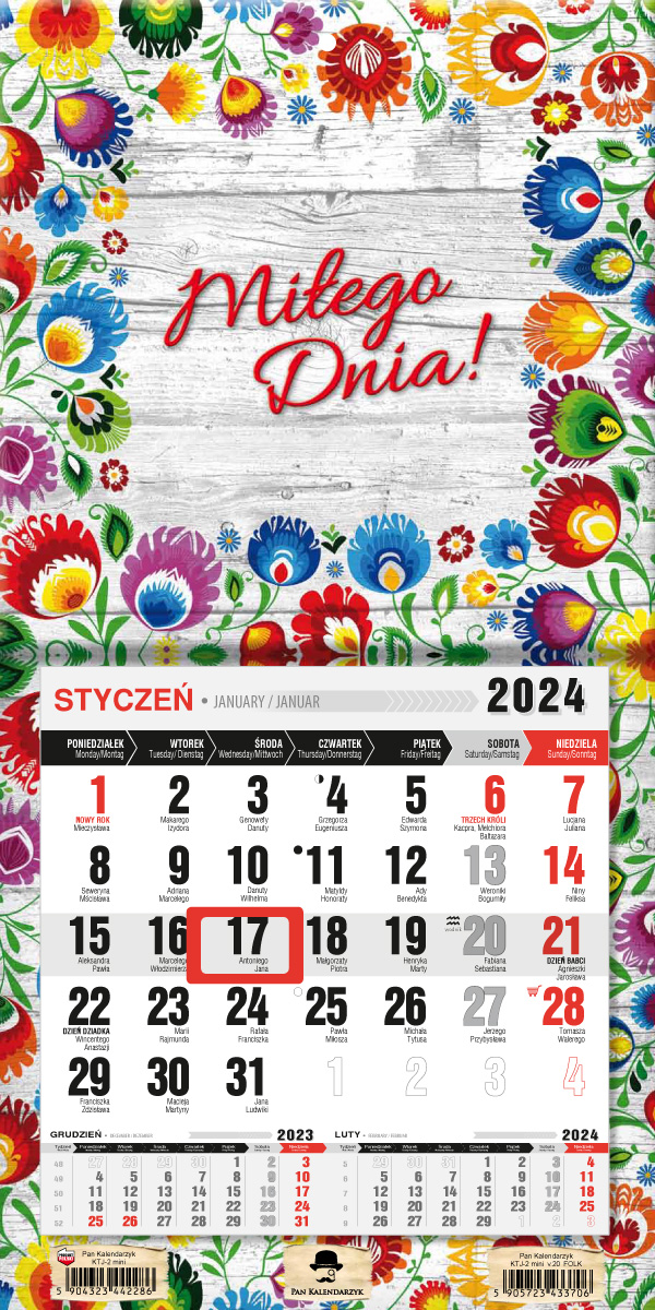 Opakowanie Kalendarz 2024 trójdzielny MINI jednodzielny z magnesem folk KTJ2M-V.20