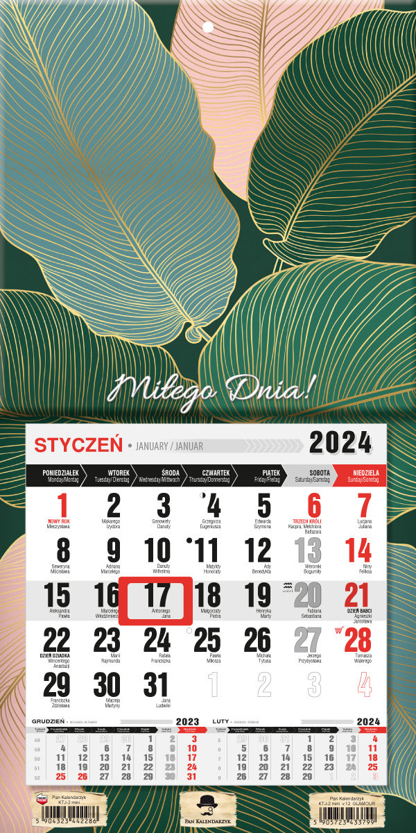 Opakowanie Kalendarz 2024 trójdzielny MINI jednodzielny z magnesem glamour KTJ2M-V.12