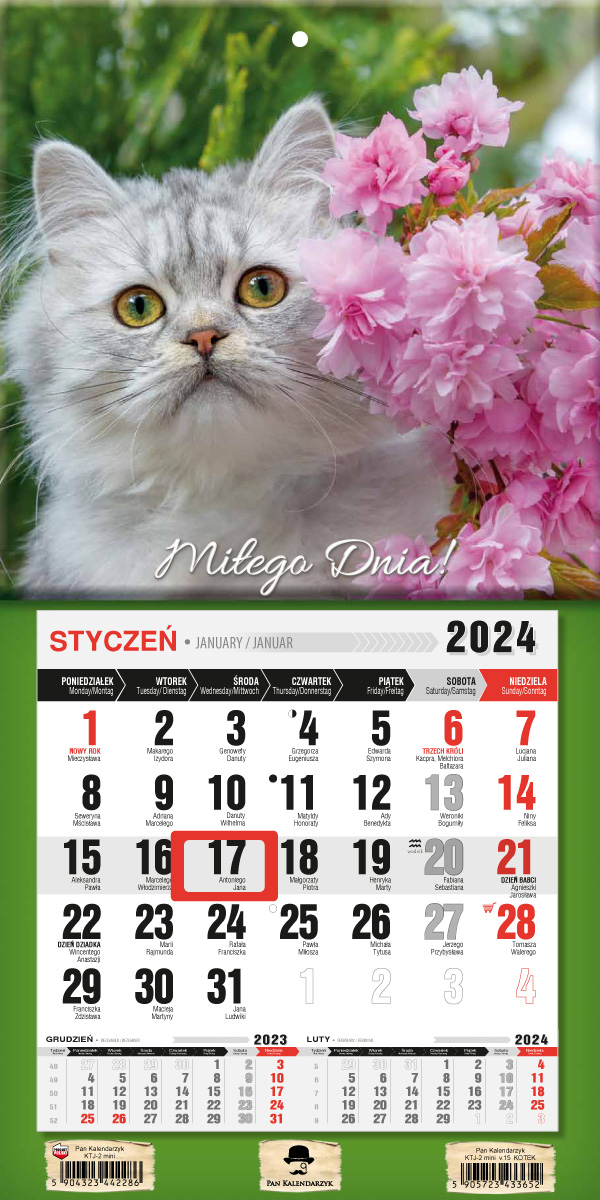 Opakowanie Kalendarz 2024 trójdzielny MINI jednodzielny z magnesem kotek KTJ2M-V.15